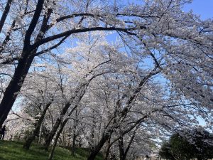 桜が満開(まんかい)の霞城公園(かじょうこうえん)で